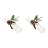 Lot de 2 Ronds de Serviette Branche Enneigée 10cm Vert