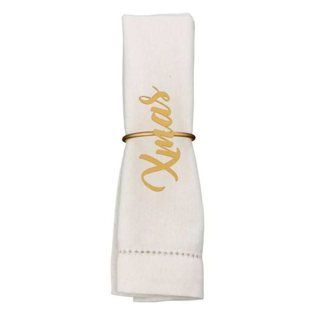 Informations Techniques : Dimensions : L. 6,8 x l. 5 x H. 5 cm Matière : Métal Spécificités : Pratique & Festif Lot de 2 ronds de serviette Inscription Xmas (Christmas) Forme ronde Poids : 0,01 kg Couleur : Or