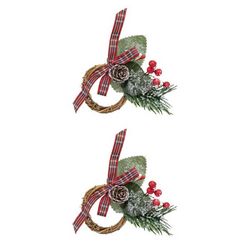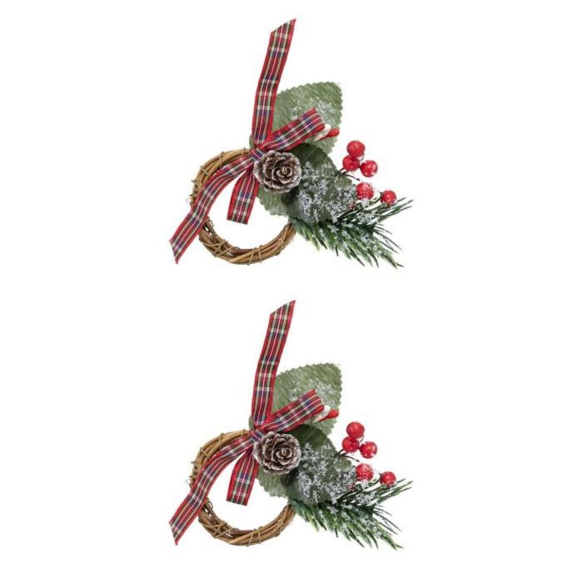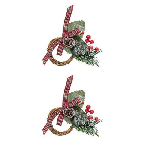 Informations Techniques : Dimensions : L. 7 x l. 2,5 x H. 9 cm Matière : Polyester, Métal & Polyéthylène Spécificités : Pratique & Utile Lot de 2 Ronds de Serviette Avec Branche Poids : 0,015 kg Couleur : Vert & Naturel