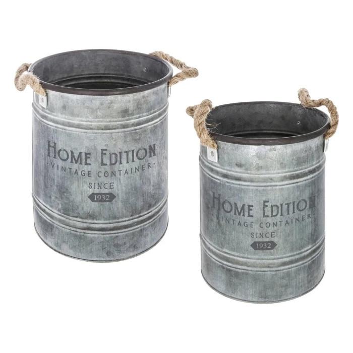 Lot de 2 Seaux en Métal Spring Garden 25cm Gris
