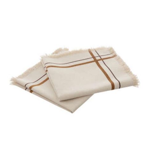 Informations Techniques : Dimensions : L. 40 x l. 40 x H. 0,2 cm Matière : Coton Spécificités : Pratique & Utile Lot de 2 serviettes de table Avec franges Motif rayé Forme carrée Poids : 0,15 kg Couleur : Beige