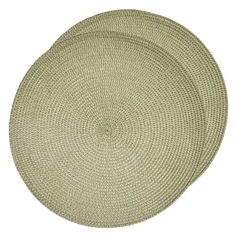 Lot de 2 sets de table tressés AFHIR - Diam. 38 cm - Céladon