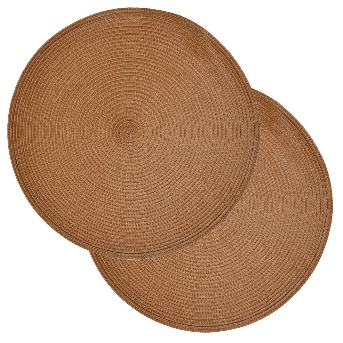 Lot de 2 sets de table tressés AFHIR - Diam. 38 cm - Terracotta