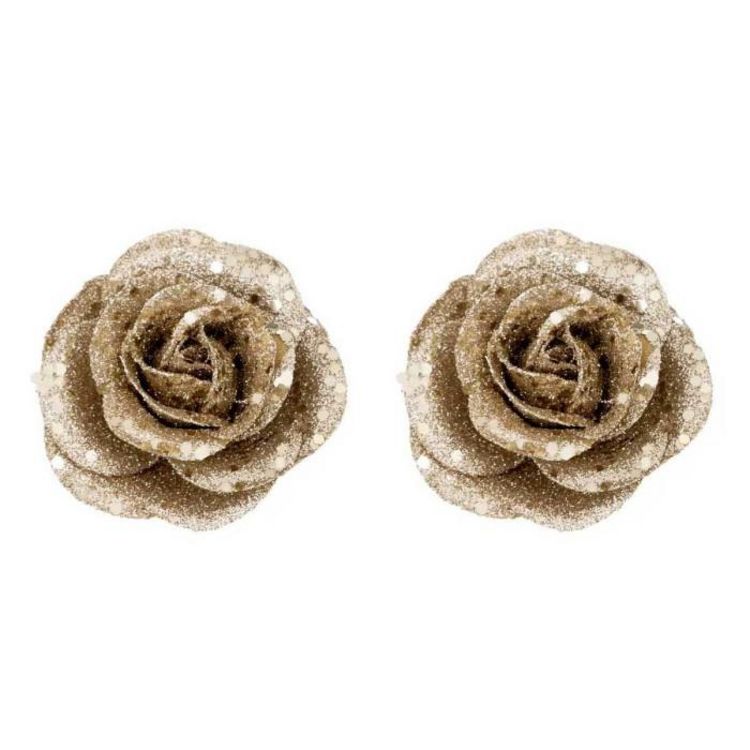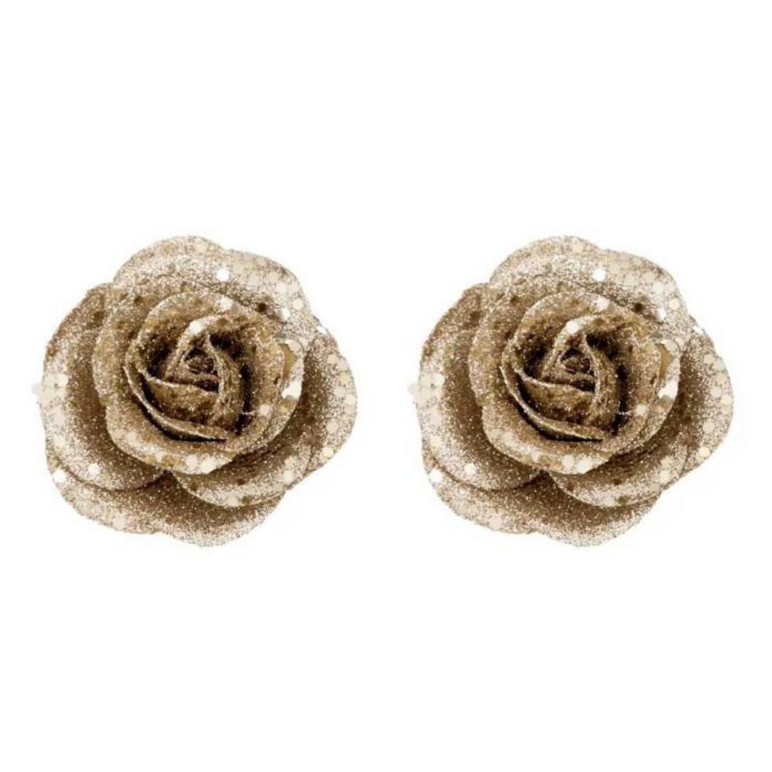 Lot de 2 Sujets de Noël Pailletés Roses 6cm Or
