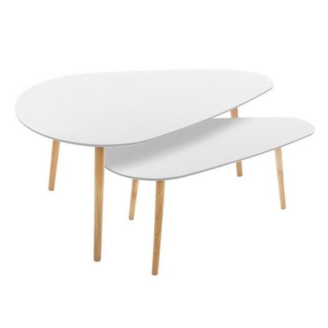 Lot de 2 Tables à Café en Bois Mileo 98cm Blanc