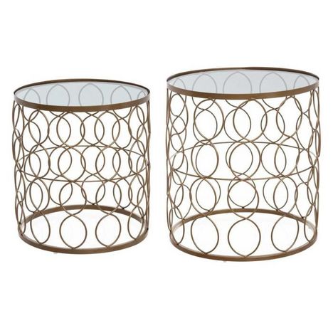 Informations Techniques : Dimensions : Taille 1 : L. 35 x l. 35 x H. 38 cm Taille 2 : L. 40,5 x l. 40,5 x H. 44 cm Matière : Fer & Verre trempé Spécificités : Tendance & Pratique Lot de 2 tables d'appoint design Forme ronde Plateau en verre Effet spirale Facile d'utilisation & d'entretien Poids