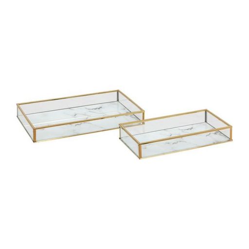 Informations Techniques : Dimensions : Taille 1 : L. 20 x l. 10 x H. 3 cm Taille 2 : L. 24 x l. 14 x H. 3,2 cm Matières : Verre & Acier inoxydable Spécificités : Pratique & Utile Lot de 2 vide-poches Finition effet marbre Forme rectangulaire Poids : 0,56 kg (0,34 et 0,22) Couleur : Blanc