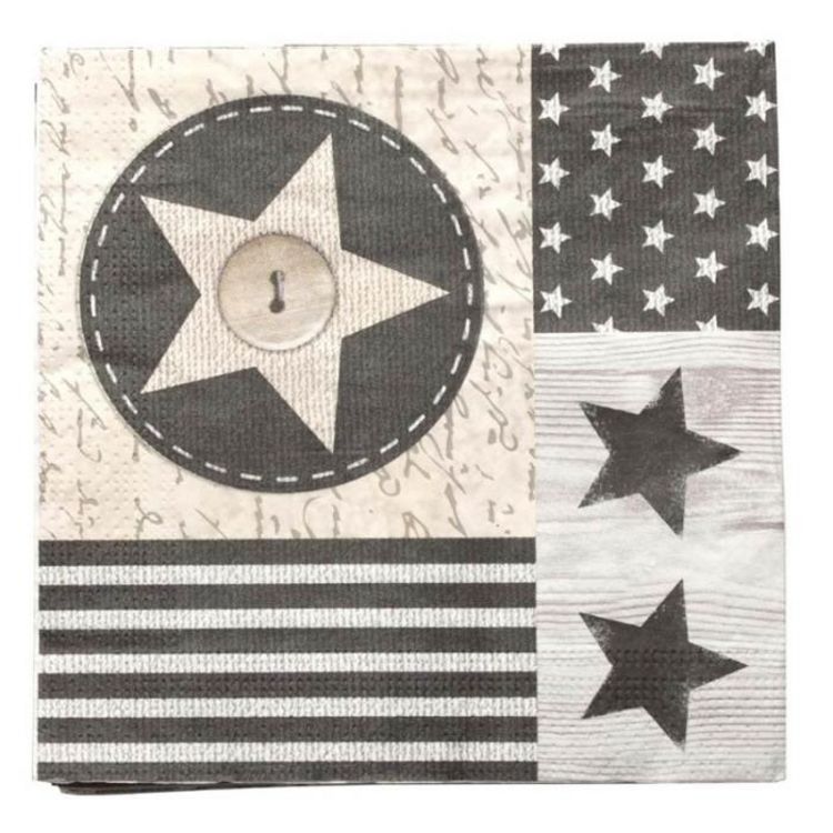 Lot de 20 Serviettes en Papier Stars 33cm Gris & Noir