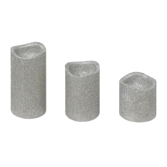 Lot de 3 Bougies LED Paillettes 10cm Argent
