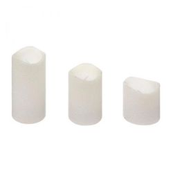 Informations Techniques : Dimensions : Bougie 1 : D. 5 x H. 10 cm Bougie 2 : D. 5 x H. 7,5 cm Bougie 3 : D. 5 x H. 5 cm Matière : Polypropylène Spécificités : Pratique & Déco Lot de 3 bougies LED déco Forme ronde Fonctionne à piles (non incluses) Type de pile : CR2032 / CR2034 - 3V Poids : 0,23 kg