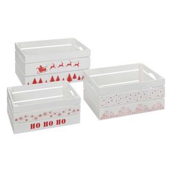 Lot de 3 cagettes de Noël en bois - L. 40 x P. 25 x H. 20 cm - Blanc