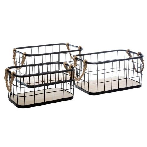 Informations Techniques : Dimensions : Petite : L. 31,5 x l. 19,5 x H. 16 cm Moyenne : L. 34,5 x l. 23 x H. 18 cm Grande : L. 38 x l. 26 x H. 19 cm Matières : Fer & Bois (Paulownia) Spécificités : Design & Pratiques Vendu en lot de 3 Anses intégrées Caisses cagettes Facile d'entretien et d'utilisat