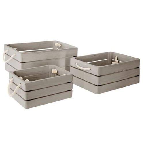 Lot de 3 Caisses en Bois Cagette 35cm Gris