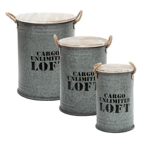 Lot de 3 Coffres Bidon Design Loft 51cm Gris
