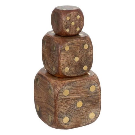 Lot de 3 Dés Déco en Bois Roger 10cm Marron