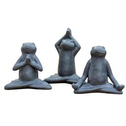 Informations Techniques : Dimensions : L. 16 x l. 8,5 x H. 18 cm Matière : Ciment Spécificités : Déco & Résistant Lot de 3 statuettes En forme de grenouille Usage intérieur/extérieur Poids : 1 kg Couleur : Gris