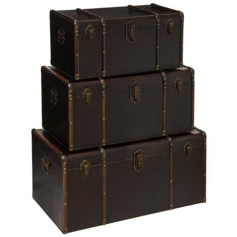 Informations Techniques : Dimensions : Petite : L. 60,2 x l. 28,9 x H. 29,7 cm Moyenne : L. 70,2 x l. 33,5 x H. 34,4 cm Grande : L. 80,2 x l. 39,5 x H. 40 cm Matières : MDF, Polyester & Fer Spécificités : Chic & Pratique Vendu en lot de 3 3 Tailles différentes Design Vintage Poids : 22,217 kg Petite