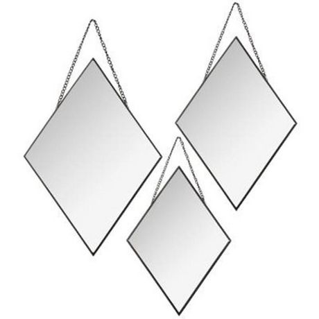 Lot de 3 Miroirs à Chaînes Losange 38cm Noir