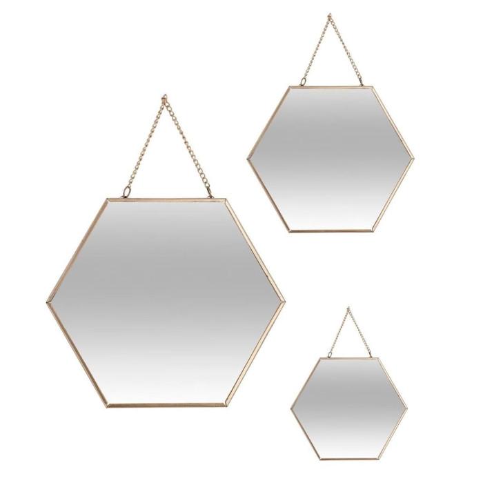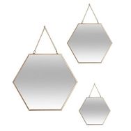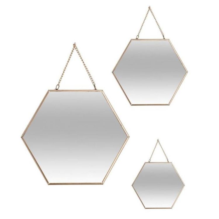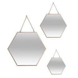 Lot de 3 Miroirs Métal Hexagone 29cm Or