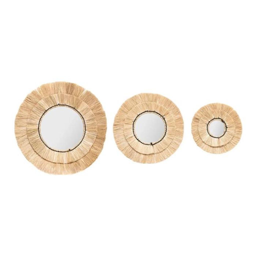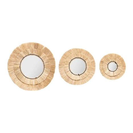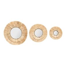 Lot de 3 Miroirs Muraux en Raphia Alba 40cm Beige