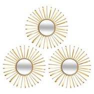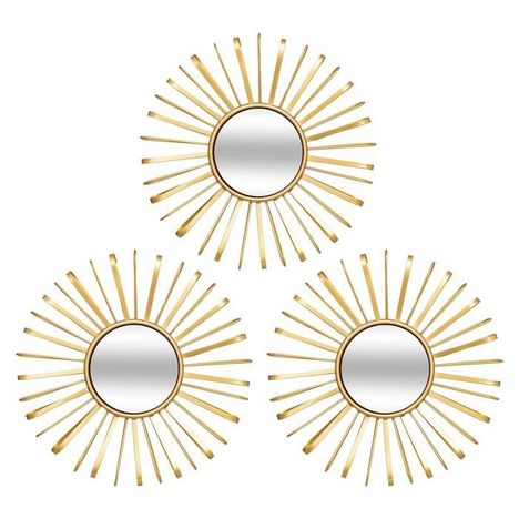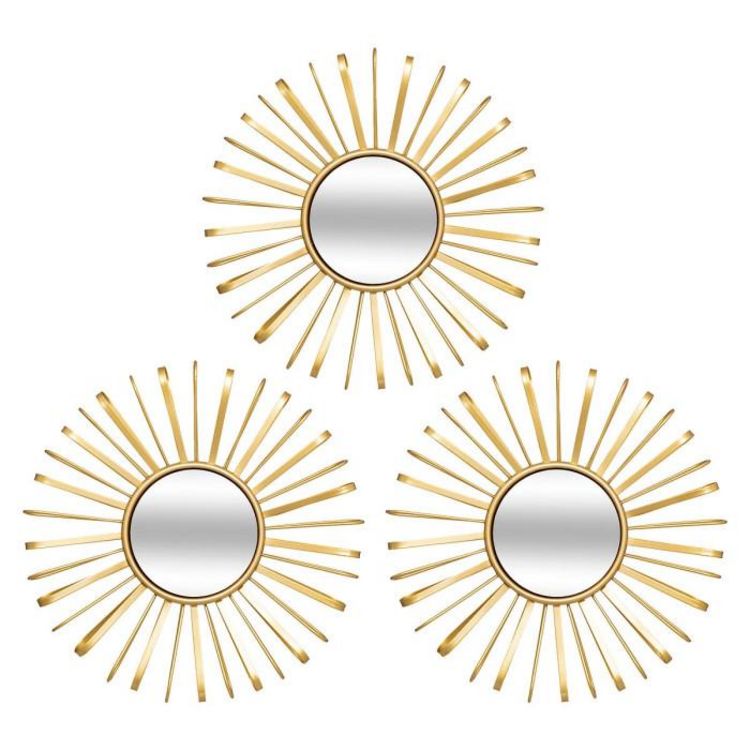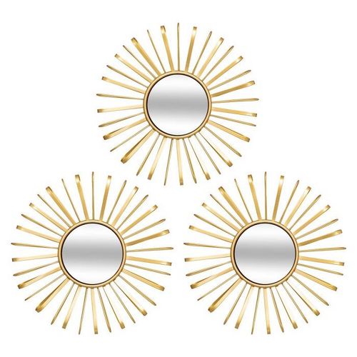 Lot de 3 Miroirs Muraux Soleils Warren 24cm Doré