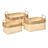 Informations Techniques : Dimensions : S : L. 29 x l. 19,5 x H. 26 cm M : L. 34,5 x l. 24 x H. 18 cm L : L. 39 x l. 28 x H. 20 cm Matières : Bambou, Roseau & Jute Végétale Spécificités : Pratique & Tendance Lot de 3 Paniers de Rangement Forme Rectangulaire Avec Anses Poids : 0,675 kg Couleur : Beig