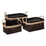 Informations Techniques : Dimensions : S : L. 29 x l. 19,5 x H. 26 cm M : L. 34,5 x l. 24 x H. 18 cm L : L. 39 x l. 28 x H. 20 cm Matières : Bambou, Roseau & Jute Végétale Spécificités : Pratique & Tendance Lot de 3 Paniers de Rangement Forme Rectangulaire Avec Anses Poids : 0,675 kg Couleur : Marr