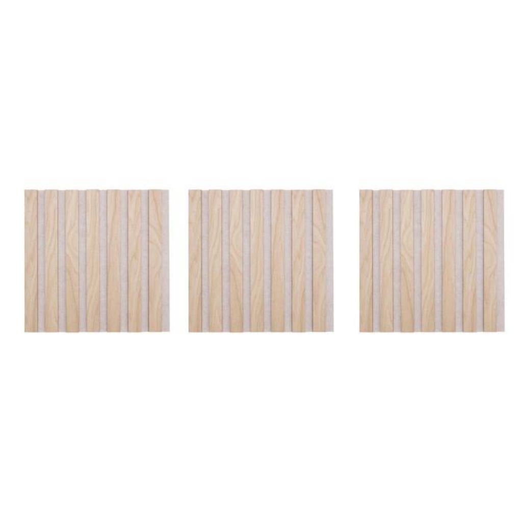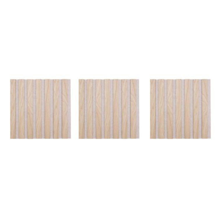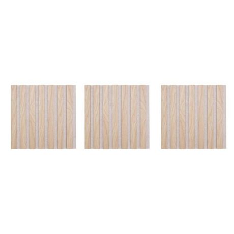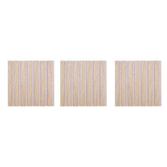 Informations Techniques : Dimensions : L. 30 x l. 2,1 x H. 30 cm Matières : MDF & Polyester Spécificités : Pratique & Déco Lot de 3 panneaux décoratifs muraux Isolation acoustique Tasseaux réguliers Doublage en feutrine beige Effet chêne Facilement découpable Installation simple A fixer avec une