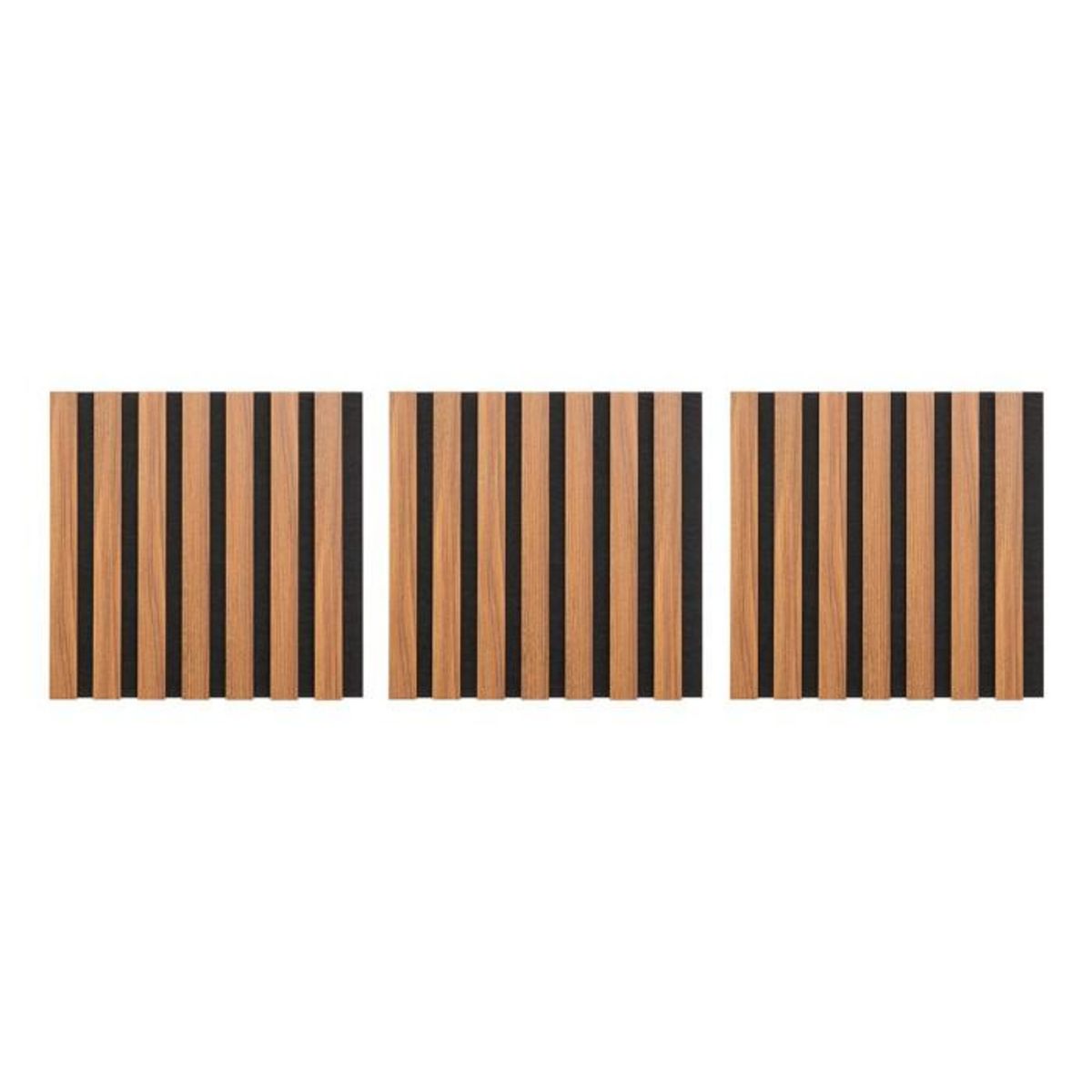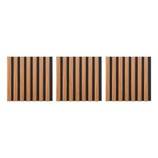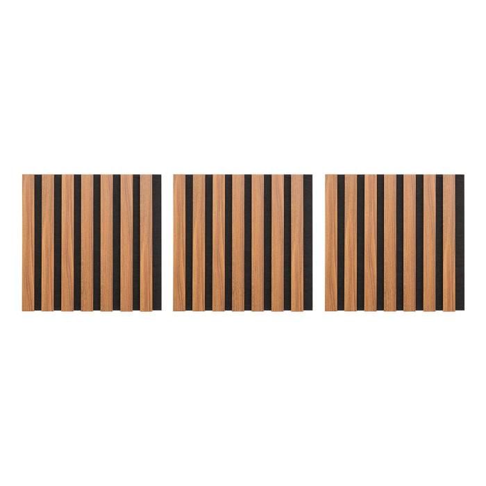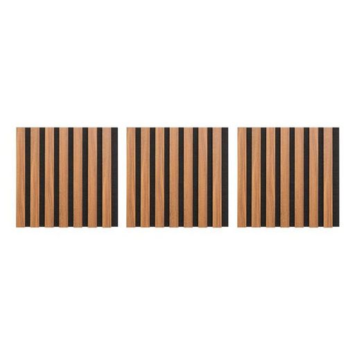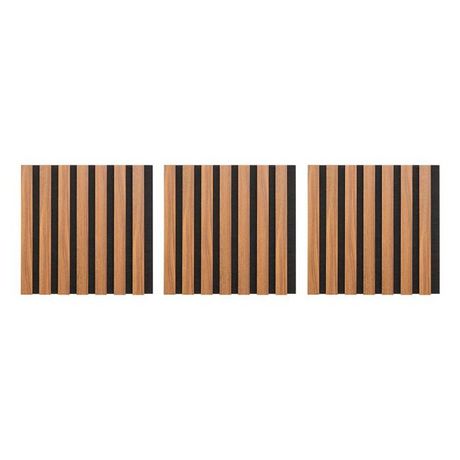 Informations Techniques : Dimensions : L. 30 x l. 2,1 x H. 30 cm Matières : MDF & Polyester Spécificités : Pratique & Déco Lot de 3 panneaux décoratifs muraux Isolation acoustique Tasseaux réguliers Doublage en feutrine noir Effet chêne Facilement découpable Installation simple A fixer avec une