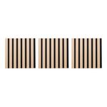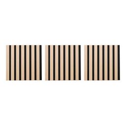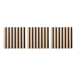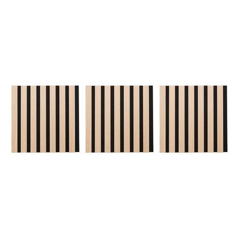 Informations Techniques : Dimensions : L. 30 x l. 2,1 x H. 30 cm Matières : MDF & Polyester Spécificités : Pratique & Déco Lot de 3 panneaux décoratifs muraux Isolation acoustique Tasseaux réguliers Doublage en feutrine noir Effet chêne Facilement découpable Installation simple A fixer avec une