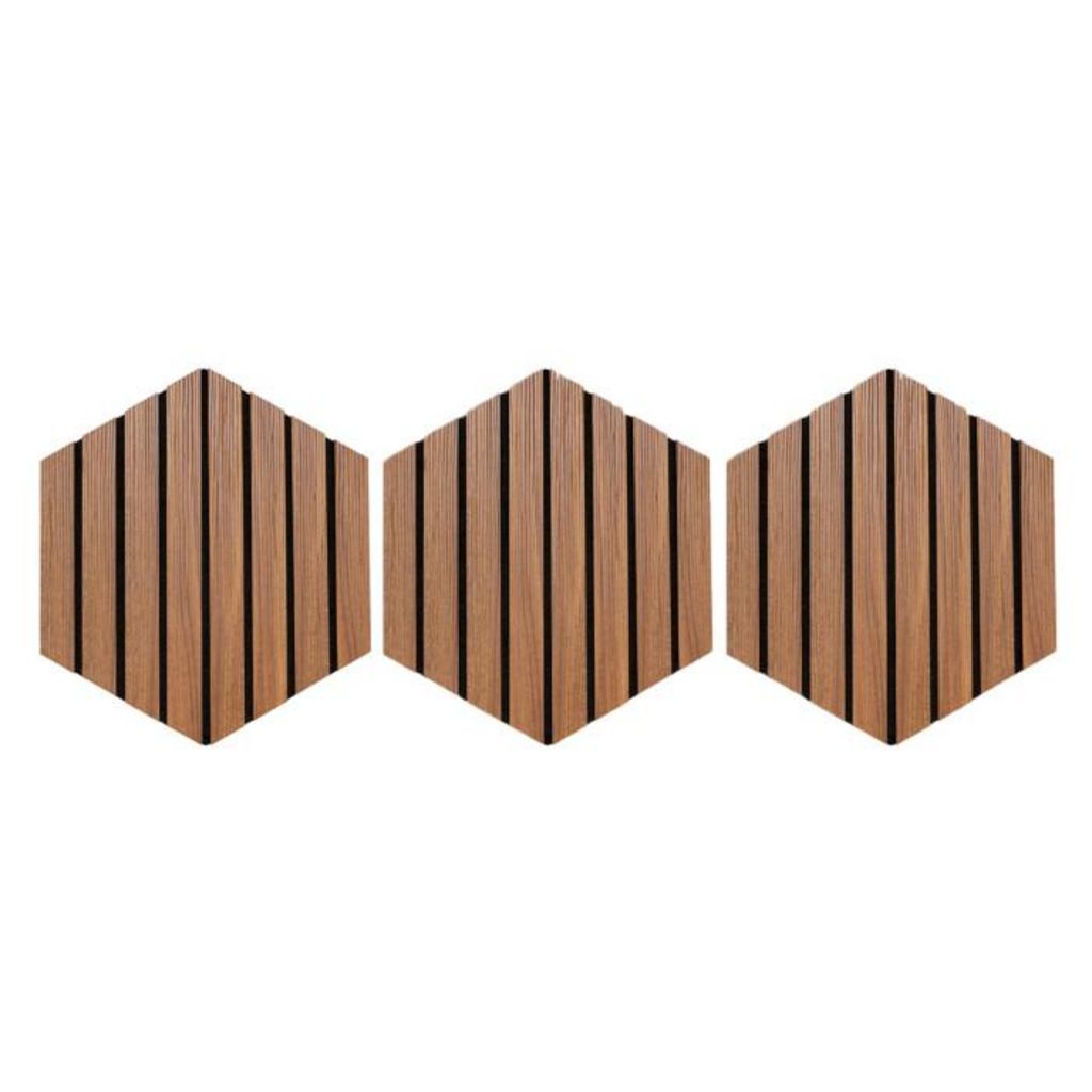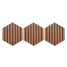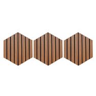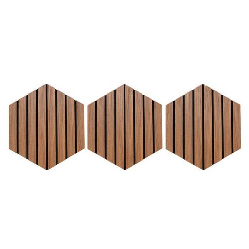 Informations Techniques : Dimensions : L. 26 x l. 2,1 x H. 30 cm Matières : MDF & Polyester Spécificités : Pratique & Déco Lot de 3 panneaux décoratifs muraux Isolation acoustique Tasseaux réguliers Doublage en feutrine noir Forme hexagonale Effet noyer Facilement découpable Installation simple