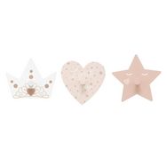 En savoir +Un concept rigolo et tellement utile que ces trois patères sur le thème de la princesse pour enfant.Les 3 patères sont différentes : une couronne, une étoile et un coeur. A disposer comme bon vous semble !Informations sur le lot de 3 patères princesse :Composition : MDFDimensions couronne : L. 12,5 x P. 4 x H. 10 cm Dimensions coeur : L. 11 x P. 4 x H. 11 cm Dimensions étoile : L. 12 x P. 4 x H. 11,5 cmPose facile