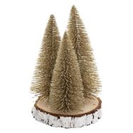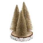 Lot de 3 Sapins de Noël Déco Rondin 20cm Or