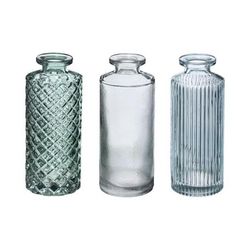 Informations Techniques : Dimensions : D. 5,4 x H. 13,2 cm Matières : Verre Spécificités : Chic & Tendance Lot de 3 Soliflores Forme Ronde Effet Strié Poids : 0,224 kg Couleur : Vert