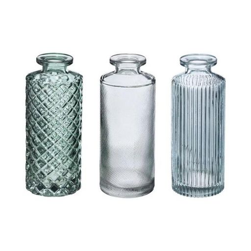 Lot de 3 Soliflores Design Verre Strié 13cm Vert