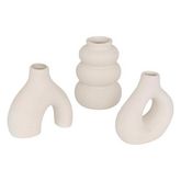 Informations Techniques : Dimensions : Taille 1 : D. 7 x H. 9 cm Taille 2 : L. 9 x l. 4 x H. 9 cm Taille 3 : L. 9 x l. 4,5 x H. 9 cm Matière : Dolomite Spécificités : Déco & Élégant Lot de 3 soliflores Design unicolore En forme de pont, de donut et à vagues Poids : 0,08 kg Couleur : Blanc
