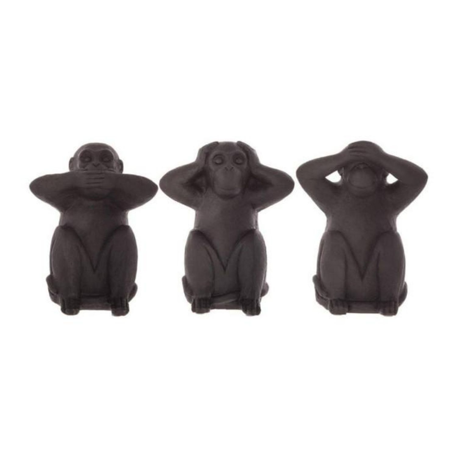 Lot de 3 Statues Singes Sagesse 24cm Noir