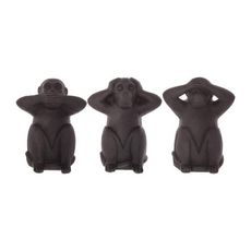 Informations Techniques : Dimensions : L. 19,5 x l. 14 x H. 24 cm Matière : Résine Spécificités : Lot de 3 statues singes Symbole singe sagesse Poids : 0,55 kg Couleur : Noir