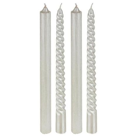 Informations Techniques : Dimensions : D. 2,1 x H. 25 cm Matière : Parrafine Spécificités : Pratique & Utile Lot de 4 Bougies Bâton Forme Ronde Avec Paillettes Design Twist Durée de Combustion : 5,5 heures Combustion interne Type de Cire : Parrafin Wax Poids de la Cire : 192 g Poids : 0,244 kg Coul