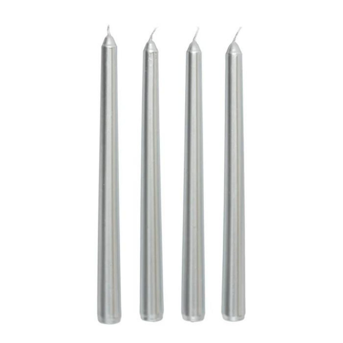 Lot de 4 Bougies Bâton Satin 25cm Argent