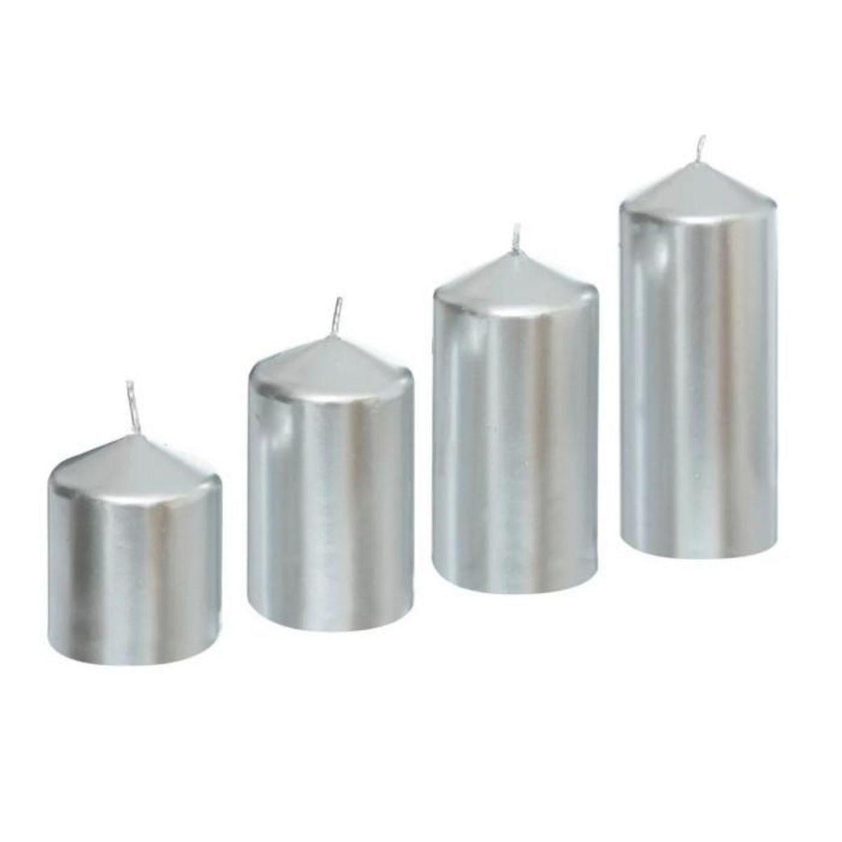 Lot de 4 bougies de l'Avent Satin 12cm Argent