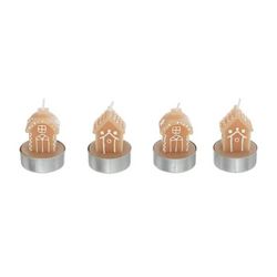 Informations Techniques : Dimensions : D. 3,7 x H. 5,5 cm Matière : Paraffine Spécificités : Pratique & Festif Lot de 4 bougies déco En forme de maison Poids : 0,09 kg Couleur : Beige