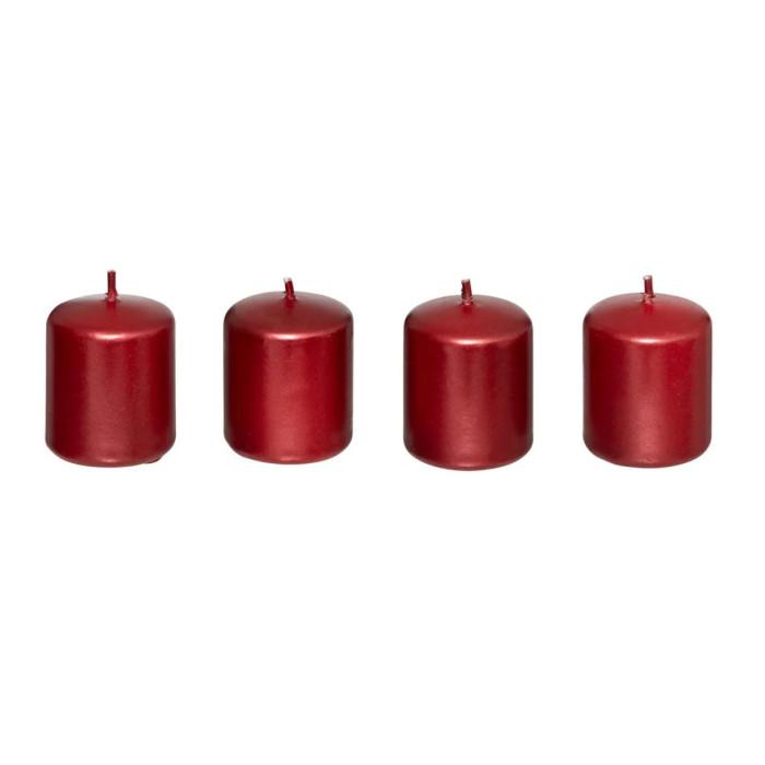 Lot de 4 Bougies Déco Satin 4cm Rouge