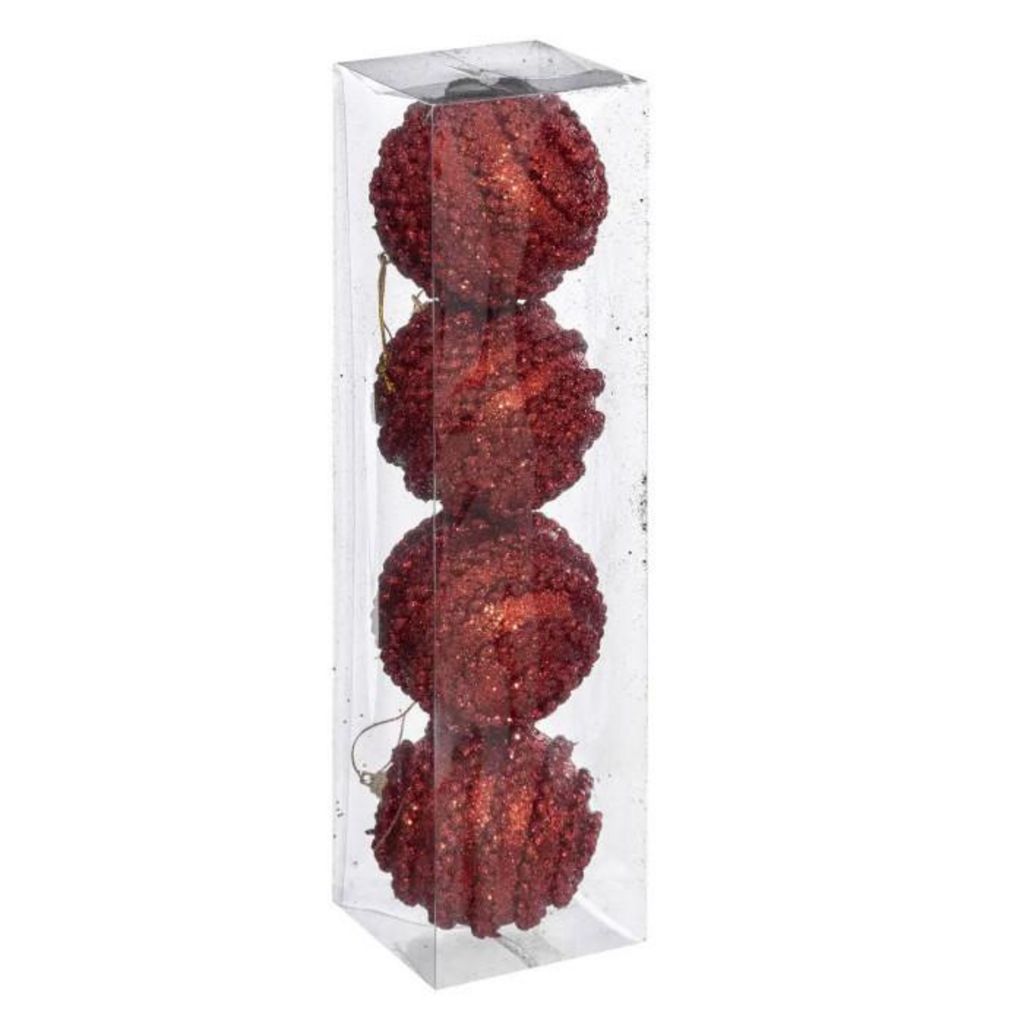 Lot de 4 Boules de Noël Maille Soir 8cm Rouge