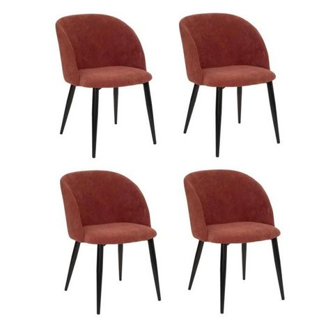 Informations Techniques : Dimensions : L. 53 x l. 60 x H. 80 cm Hauteur de l'Assise : 48,5 cm Matières : Fer, Polyester & Mousse Polyuréthane Spécificités : Pratique & Tendance Lot de 4 Chaises Design Assise Confortable Usage Intérieur A monter soi-même Poids : 6,1 kg Couleur : Terracotta