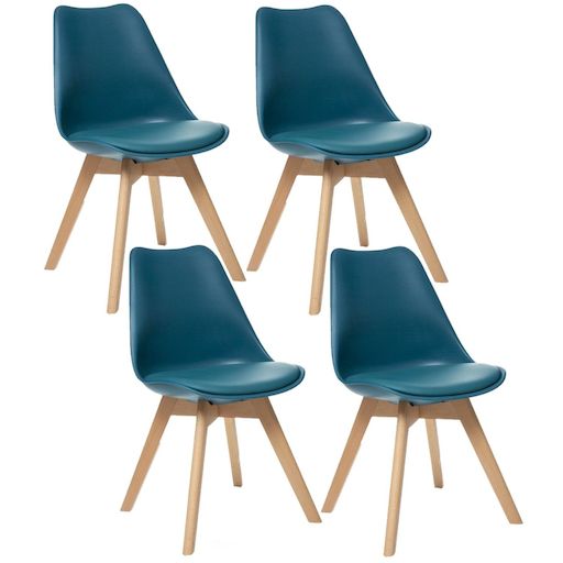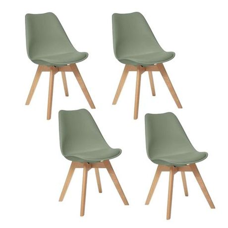 Créez une salle à manger tendance et au style scandinave avec ce lot de 4 chaises contemporaines et confortables.FICHE TECHNIQUE- Lot de 4 chaises- Couleur : Vert- Pieds de la chaise en bois de Hêtre- Assise en polypropylène- Rembourrage du coussin en Mousse PU (18 kg/m3)- Revêtement du Coussin en P