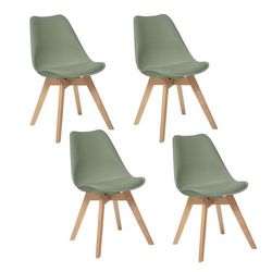 Créez une salle à manger tendance et au style scandinave avec ce lot de 4 chaises contemporaines et confortables.FICHE TECHNIQUE- Lot de 4 chaises- Couleur : Vert- Pieds de la chaise en bois de Hêtre- Assise en polypropylène- Rembourrage du coussin en Mousse PU (18 kg/m3)- Revêtement du Coussin en P