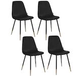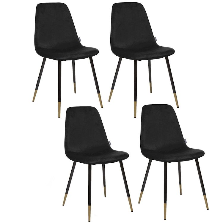 Elégantes et contemporaines, ces chaises accompagneront à la perfection votre table de salle à manger.FICHE TECHNIQUE- pieds en acier, noirs dorés- Rembourrage de l'assise en mousse polyuréthane.- Revêtement de l'assise en polyester.- Lot de 4 ChaisesCARACTERISTIQUES TECHNIQUES- Dimensions : L. 44 x