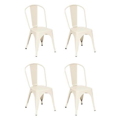 Informations Techniques : Dimensions : L. 45 x l. 48 x H. 85 cm Matière : Acier Spécificités : Robuste & Empilable Lot de 4 chaises À monter soi-même Poids : 4,25 kg (à l'unité) Couleur : Beige