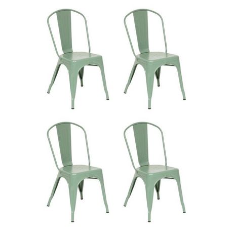Informations Techniques : Dimensions : L. 45 x l. 48 x H. 85 cm Matière : Acier Spécificités : Robuste & Empilable Lot de 4 chaises À monter soi-même Poids : 4,25 kg (à l'unité) Couleur : Vert Olive